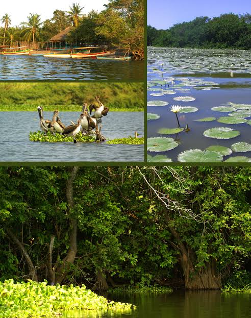 Desde lo alto de Las Brisas, sobre la carretera Escénica que se alza por encima de Acapulco en el lado Este, uno puede mirar Puerto Marqués (un brazo pequeño y tranquilo del océano) hacia Playa Revolcadero, una playa frecuentemente turbulenta donde las olas puedes ser realmente fuertes. Un poco más allá yace el aeropuerto internacional. Hacia su izquierda, extendiéndose a lo largo y hacia afuera del punto de tierra donde el aeropuerto esta construido, se encuentra la Laguna de Tres Palos. Es una laguna grande natural de agua dulce que es el hogar de gran variedad de especies diferentes de vegetación, aves y mamíferos.